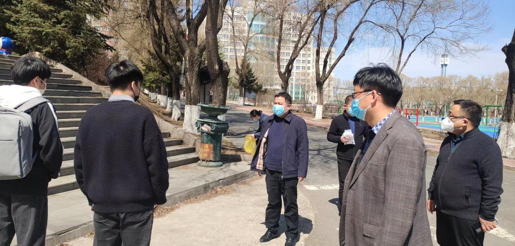 为进一步从严从细做好校园常态化疫情防控工作,减少疫情传播风险,保障在校师生员工身体健康,学校住校领导带领学工人员连续多日在校园公共场所检查师生员工科学佩戴口罩情况。