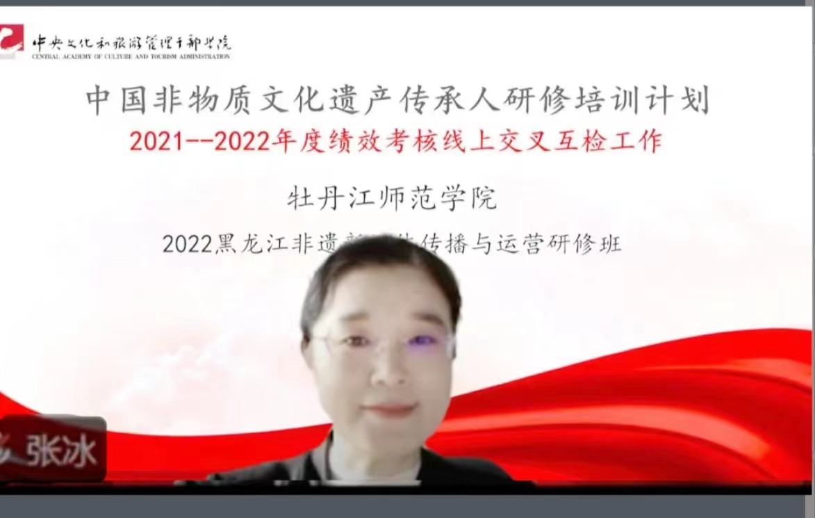 我校副院长张冰在会上讲话。她表示,学校非常重视非遗研培工作,将非遗纳入学校学科建设重要内容,打造了一支开拓创新务实肯干的研究团队,从人力物力支持、经费支持、平台建设等方面提供坚强有力的保障。她希望通过专家的检查指导,进一步完善和加强我校非物质文化遗产研究实践,继续加大投入和扶持力度,探索非物质文化遗产保护的新方法、新路径,为国家、黑龙江省非物质文化遗产保护与传承贡献牡丹江师范学院力量。