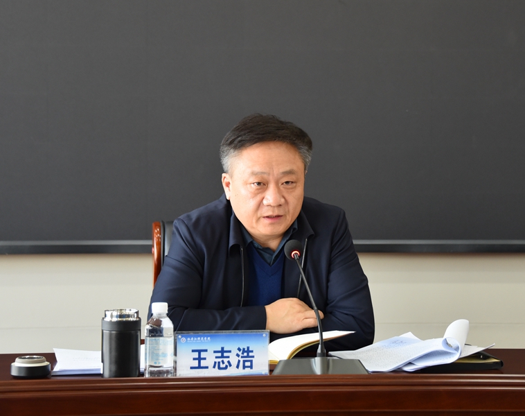 党委书记王志浩在会上讲话。他总结了学校全面推进良好政治生态建设的九方面成效。一是学校的发展目标得到了上级部门批复,得到了社会的广泛认可和全力支持;二是校、院两级领导班子勤勉、高效、团结;三是学校风气得到明显改善;四是增值性评价指标取得全面突破;五是办学条件全面改善;六是民生全面、大幅度提高;七是党建、思想政治工作全面提质增效;八是干部人事改革、职称制度改革、绩效制度改革等全面推进;九是统筹疫情防控和学校发展两手抓、两不误。同时,王志浩书记客观指出了学校在“更名”大学、综合改革、能力作风落实、党建融入业务工作等方面的不足及问题,要求全校领导干部压实落靠各方责任,发扬求真务实的作风和破解难题的担当,以增值性评价引领高质量发展,扎实推动各项目标任务落地见效。