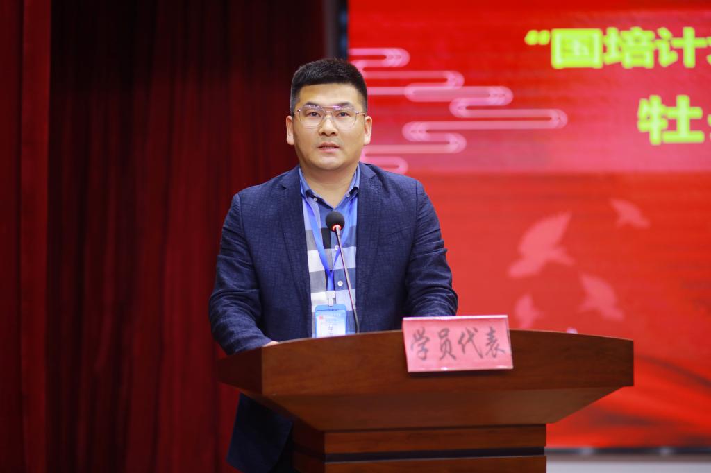 研修班学员、哈尔滨市宾县第三中学德育主任裴占民代表研修班全体学员发言。