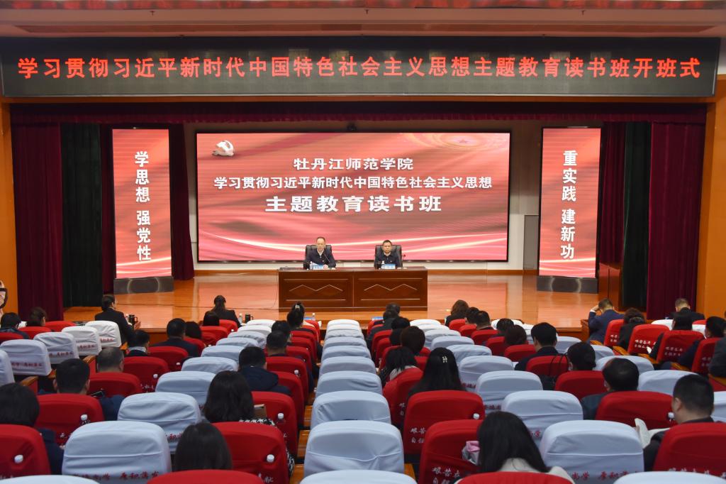 4月18日上午,牡丹江师范学院学习贯彻习近平新时代中国特色社会主义思想主题教育读书班开班式暨首场专题讲座在春秋讲坛举行。学校领导李春江、刘松、程爽、张艳霞、张燕梁、张冰、张晓祥,全校副处级以上干部参加开班式。开班式由党委副书记刘松主持。