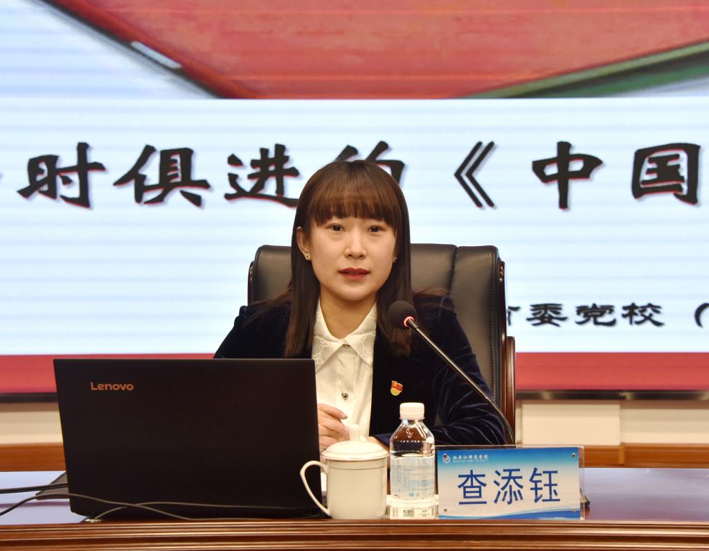 查添钰副主任以《与时俱进的<中国共产党章程>》为题,浓缩提炼了党章的百年发展历程,围绕党历来高度重视制定和完善党章、深入理解党的二十大党章的相关修改、做学习党章遵守党章的模范等三个方面,对党章进行了精辟分析和详细解读。查添钰副主任在讲座中指出,领导干部要精学党章,统一思想形成共识;遵守党章,遵规守纪躬身践行;尊崇党章,锤炼党性提升修养。