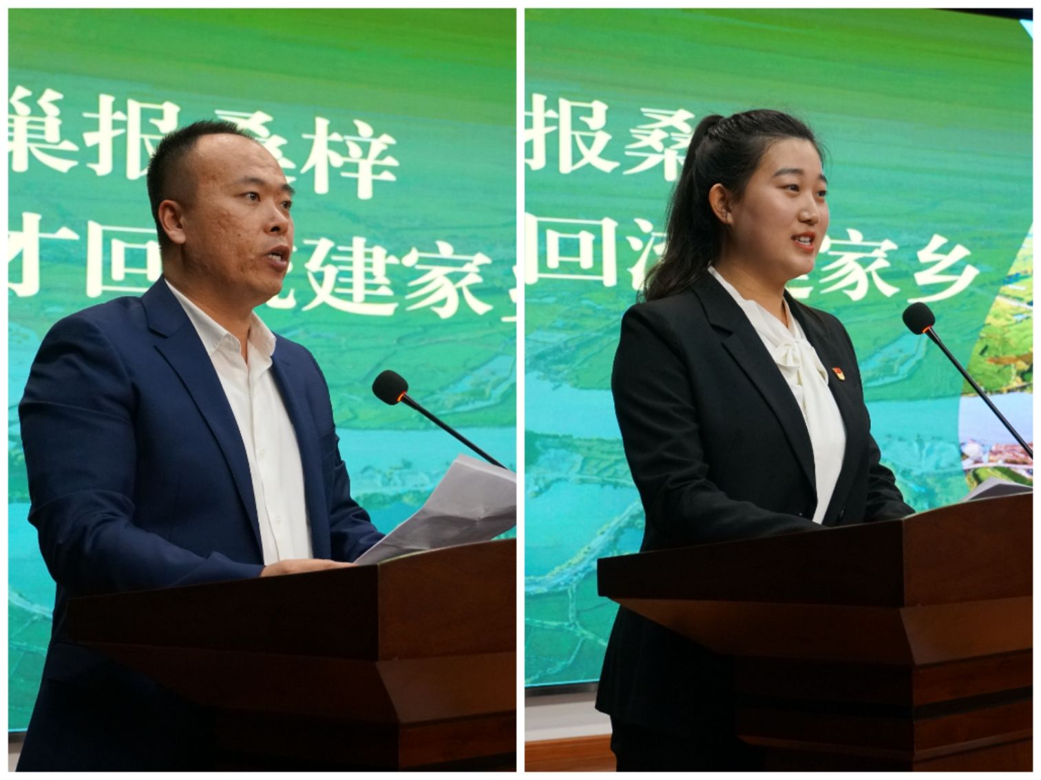 我校优秀毕业生代表、绥化市绥棱县长山镇党委副书记、镇长高健,安达市宝山镇组织委员韩越琦分别结合亲身经历,讲述了在绥化扎根发展的历程,并希望师弟师妹们能够树立远大理想,到绥化这片广袤的寒地黑土上实现自己的人生价值。
