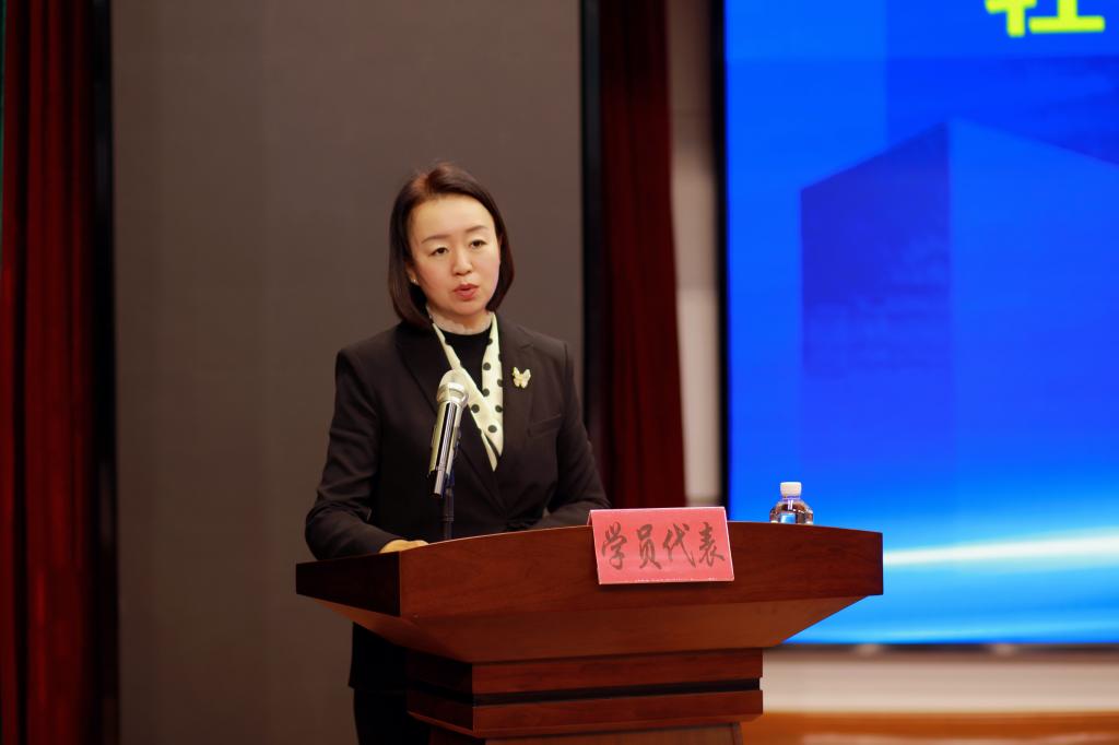 牡丹江市教育局教师工作科科长孙彤辉宣读了研修班学员守则,研修班学员代表、牡丹江市第四中学校长孙礼代表全体学员发言。