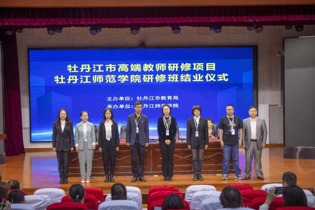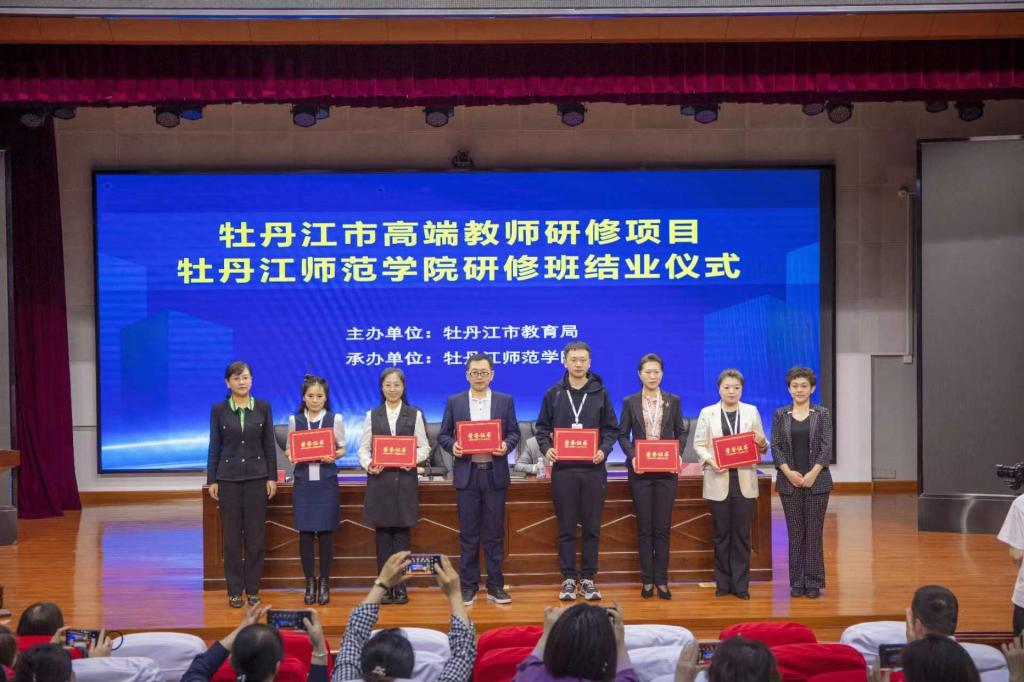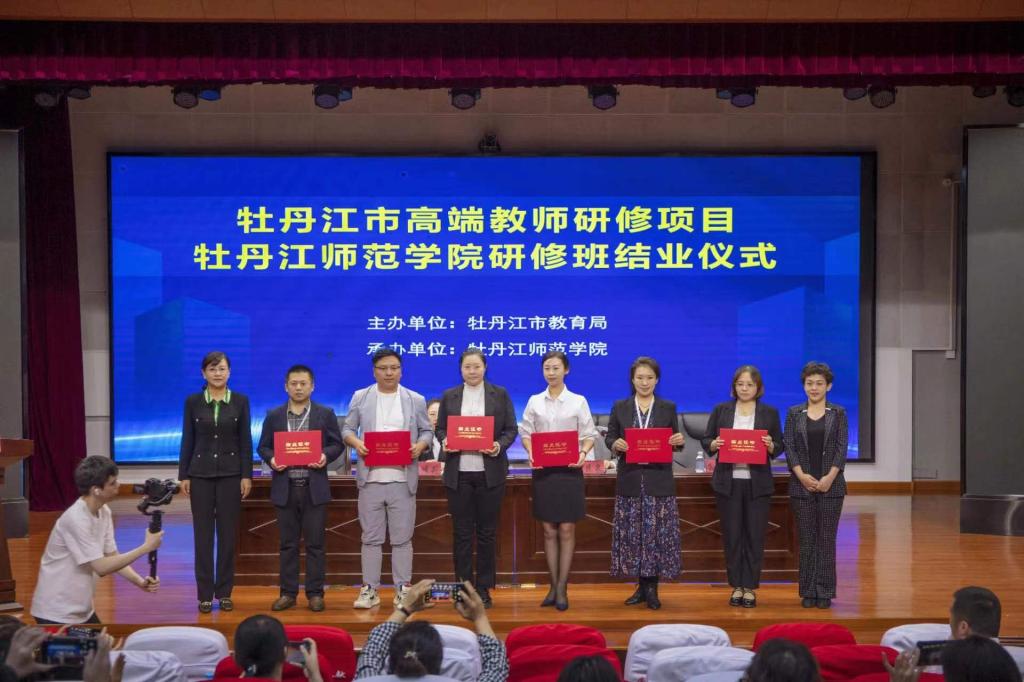 结业式上,与会领导为结业学员代表和优秀学员代表颁发证书、佩戴了牡丹江师范学院校徽。