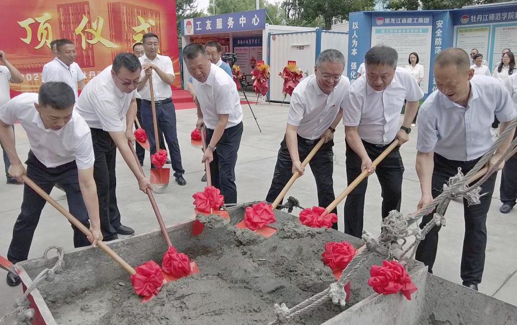 7月6日,牡丹江师范学院教师教育实训楼顺利封顶。我校领导王志浩、李春江、刘松、张艳霞、张燕梁、张晓祥、赵超;建投集团党委副书记、工会主席李曜盛,建工集团党委副书记、工会主席孙庆东,省四建公司党委书记、董事长毕海龙出席封顶仪式。