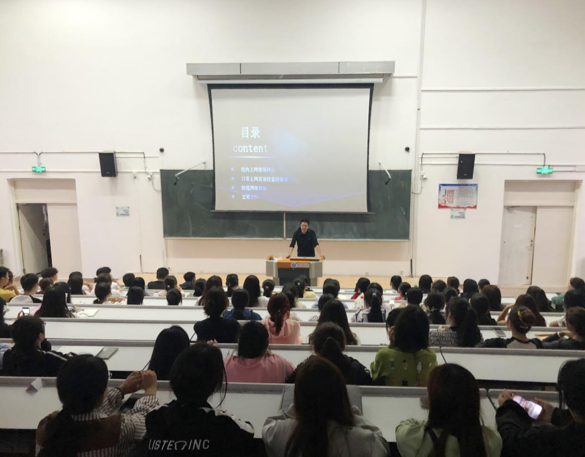牡丹江师范学院综合楼滚动播放网络安全周宣传主题
