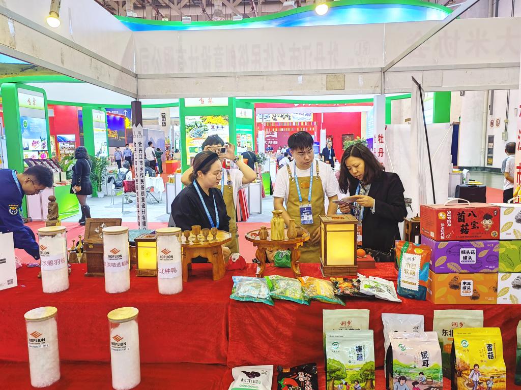 在博览会展区现场,人流如潮、摩肩接踵,来自国内外的参观者络绎不绝,我校创业学生宣帅新向黑龙江省农业农村厅领导与现场嘉宾介绍了朝鲜族传统家具陈设以及手作“中兴礼”“中兴里”等系列特色文创产品的研发设计过程以及制作工艺。团队成员向中国农产品市场协会品牌部部长杜红娟等嘉宾详细介绍了项目的系列产品,项目研发产品引起了进出口贸易商的浓厚兴趣,双方进行了深入交流。本次参展,充分展示了我校中兴村乡村振兴创新创业实践基地、校地合作的创新创业成果,为今后对外交流合作打下了坚实基础。
