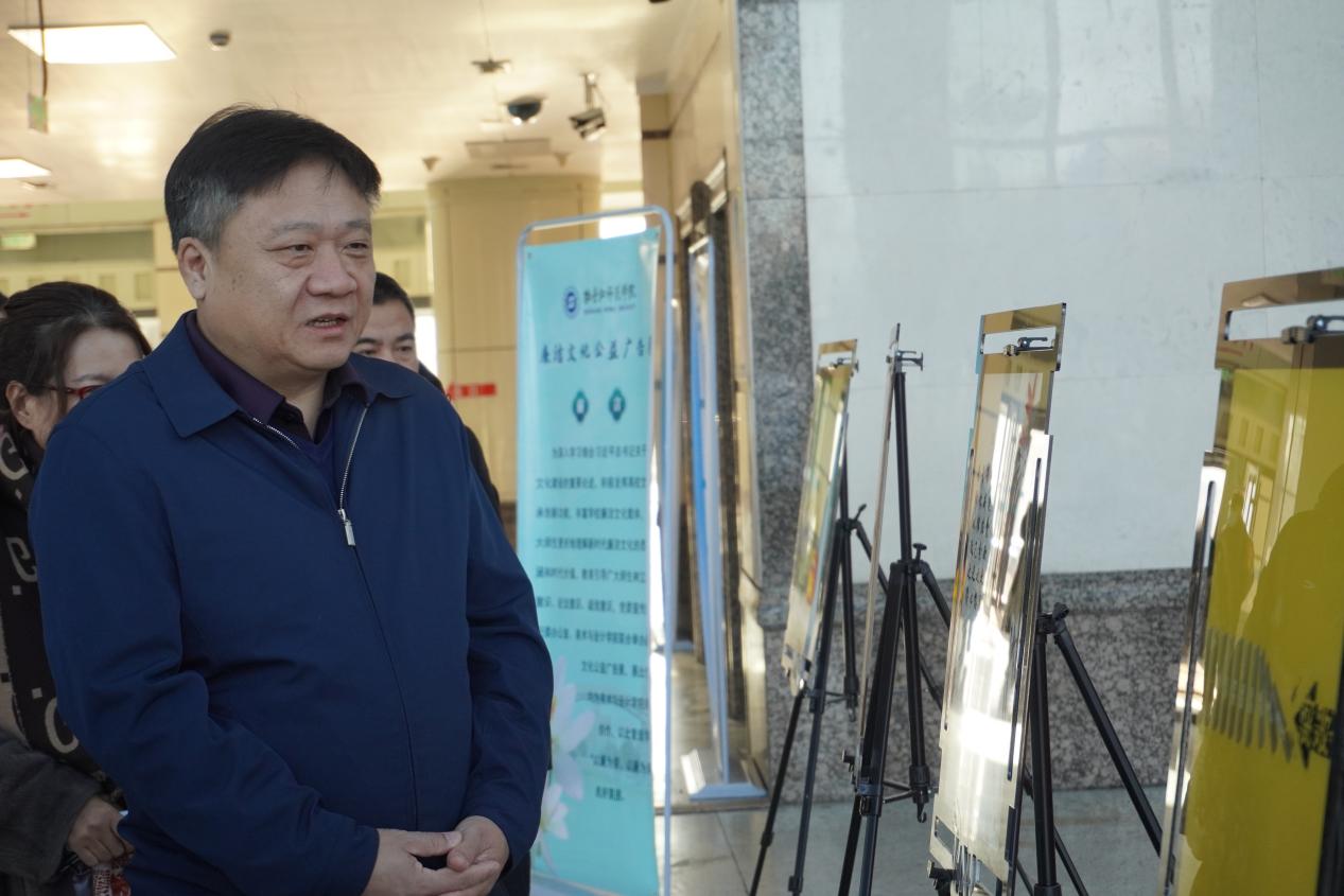 为深入学习领会习近平总书记关于廉洁文化建设的重要论述,积极发挥高校文化传承创新功能,丰富学校廉洁文化载体,12月12日,学校在综合楼阳光大厅举办廉洁文化公益广告展。学校领导王志浩、刘松、张艳霞、张燕梁、张晓祥、赵超及部分职能部门、二级学院负责人观展并指导工作。