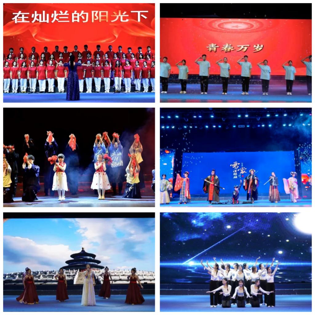 活动在合唱《在灿烂的阳光下》拉开帷幕,歌声中,师生们共同回首革命青年浴血奋斗的峥嵘岁月,在筚路蓝缕中追光前行。舞蹈《红船颂》表现了在中国的革命历史上,无数仁人志士和中国青年一起在红船的引领下,坚守初心,迎来了开天辟地新中国。歌伴舞《万疆》展现了来自四面八方的牡师学子对祖国一山一河的真挚情感,赞美了清澈的爱只为祖国的强烈爱国之情。汉服展示《礼衣华夏》体现了我国传统服饰的优美与华丽和先贤的尚武精神,展现了牡师学子对中华传统文化的自信和传承。音舞诗画《青春万岁》展现了牡师学子牢记青春使命,不负青春韶华,奋发向上,力争在祖国大地上放飞自己的青春梦想。舞蹈《如愿》表现中国人血脉中难以割舍的情感羁绊,曾经前人的奋斗,换来如今的繁华盛世,家国情怀在表演中表现得淋漓尽致。歌伴舞《我们都是追梦人》诠释了牡师学子秉承着拼搏和奉献的信念,在筑梦、追梦、圆梦的路上接续奋斗,砥砺前行。舞蹈《特斯河之赞》表现了牡师学子民族团结一家亲的和谐氛围,同时展现他们对自然的敬畏和对美好生活的向往。青春誓言《青春,向祖国报告!》中,校团委副书记赵薇带领2023年新发展团员集体宣誓!牡师学子用坚定的话语倾述着奋发向上的激情,他们正继往开来、勇担新时代重任的接班人。