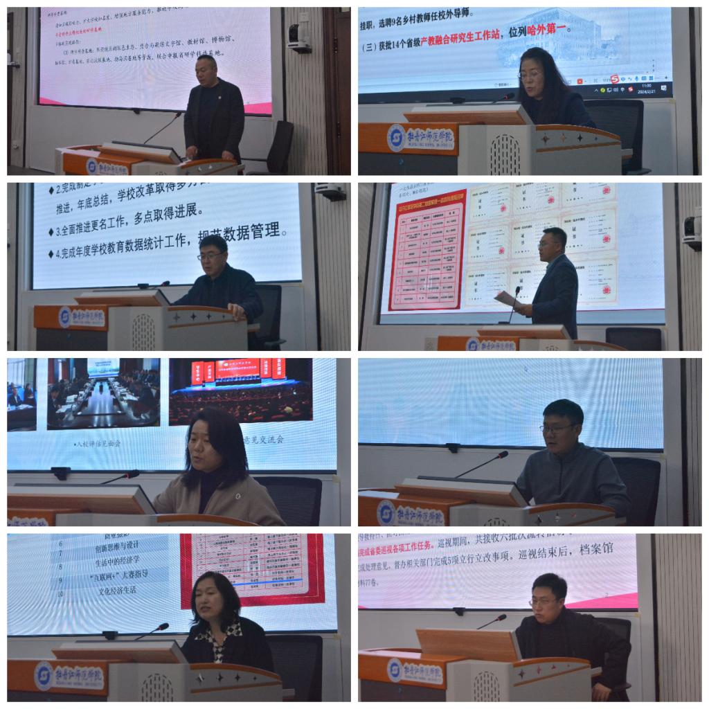 会上,学校各职能部门负责人重点围绕2023年特色亮点工作、2024年增值标志性产出等方面逐一进行汇报。