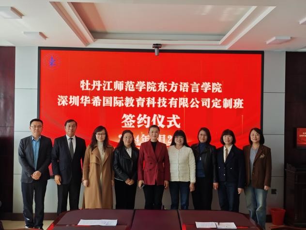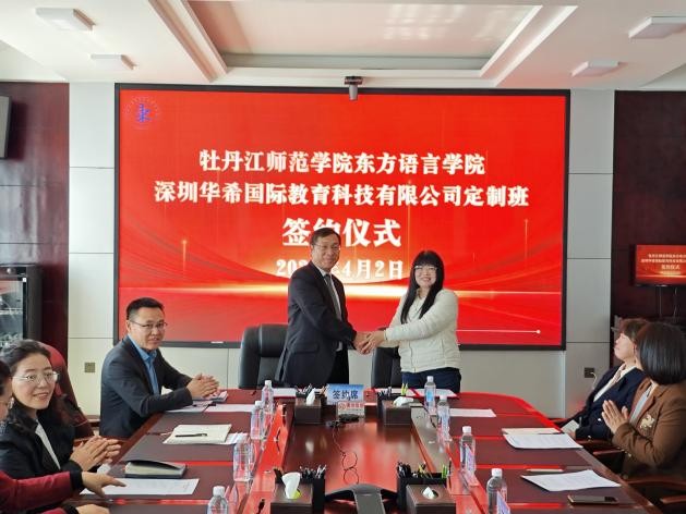 4月2日上午,我校与深圳华希国际教育科技有限公司定制班开班仪式暨人才定向培养和专业实习基地签约仪式在综合楼1203会议室举行。牡丹江师范学院副院长张冰,深圳华希国际教育科技有限公司董事长陈玉兰出席仪式;我校相关职能部门、二级学院负责人及双方代表参加仪式。仪式由东方语言学院副院长刘凯东主持。