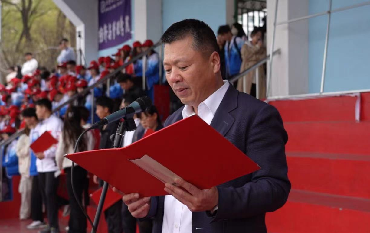 五星红旗和校旗冉冉升起,接力赛正式拉开帷幕。各学院代表队身着统一服装,齐聚在田径场主席台前,排成整齐的方阵,齐声唱响国歌。党委副书记刘松致开幕词,他指出:当代中国青年是与新时代同向同行、共同前进的一代,要求广大牡师青年要牢记习近平总书记的嘱托,坚定不移听党话、跟党走,希望广大牡师青年要大力弘扬五四精神,做信念坚定、志存高远的时代青年。裁判长体育与健康科学学院孙明和宣读竞赛规则,体育与健康科学学院教师杜建鑫代表全体裁判员宣誓,化学化工学院学生李闯代表全体运动员宣誓。