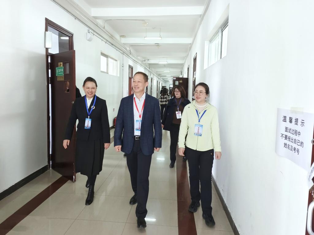 面试期间,院长、党委副书记李春江,副院长、党委常委张艳霞到外语楼、艺体楼及体育馆考区指导工作,实地检查考试组织实施情况。李春江院长指出,中小学教师资格面试是国家级考试,社会关注度高,必须严格落实各项考务管理工作,重视考试安全,确保考试工作规范有序。省招生考试院巡视员梁雪深入我校考点,对考试各环节进行了全面细致地检查与指导。