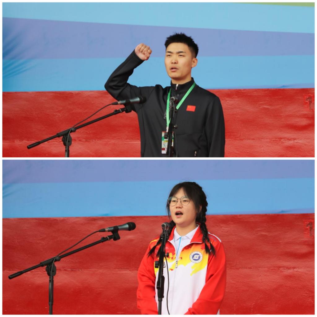 随后,体育科学学院教师杜建鑫、经济与管理学院学生才子怡分别代表全体裁判员、运动员宣誓。