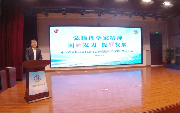 致辞后,牡丹江市人民政府、黑龙江省科学技术协会、牡丹江师范学院、中国科协青少年科技中心、牡丹江市科学技术协会、中国航天科技集团、中国联通有关领导、嘉宾、专家共同启动“2024年中国联通科技周”。