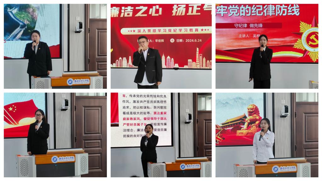 为庆祝建党103周年,深入学习贯彻习近平总书记关于党纪学习教育的重要讲话重要指示精神,推进学校党纪学习教育走深走实,6月24日下午,学校举办“学纪知纪明纪守纪 做新时代优秀共产党员”学生党员微党课大赛。学校党委副书记刘松,党委常委、组织部部长刘恒文出席活动。全校学生党支部书记及学生党员代表现场观摩比赛。