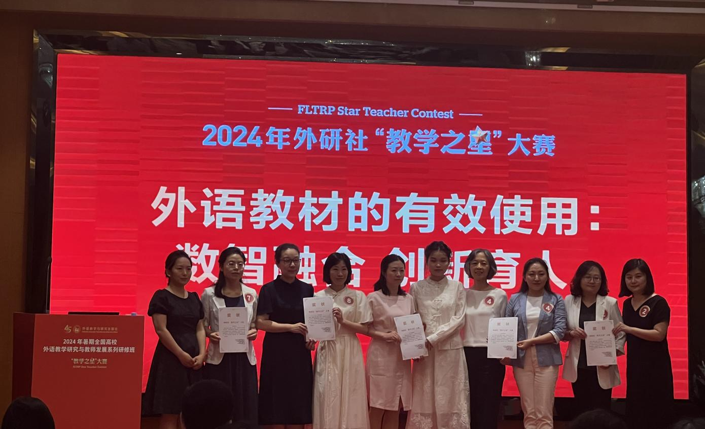 此次比赛彰显了我校教师的团队魅力与精神风貌,展示了西方语言学院教师良好的教学能力与专业素养。“理解当代中国”读写课程教学团队在学校、学院领导和老师们的大力支持与鼓励下,团队成员通力合作,集思广益,精心准备,认真钻研,坚持语言教学与育人融合的教学设计理念,将习近平新时代中国特色社会主义思想有机地融入到课程设计中。积极探索数字赋能教学的有效途径,努力提高教学效果。据悉,2024年外研社“教学之星”大赛以“外语教材的有效使用:数智融合,创新育人”为主题,引领教师落实立德树人根本任务,探索数字赋能教学创新,切实提升教学育人效果。通过本次比赛,教师们对“数智融合,创新育人”有了深层的理解,对落实立德树人根本任务,帮助教师更新教育理念、优化课程设计、提高教学效果方面具体积极作用。