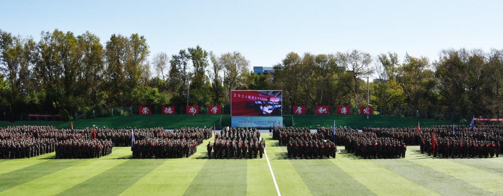 金秋九月,新篇再启。9月8日上午,牡丹江师范学院2024级新生开学典礼暨军训总结表彰大会在田径场举行。来自全国24个省、自治区、直辖市的4403名本科生和682名研究生新同学开启逐梦新征程。驻牡空军某部部队长何恩先大校,学校领导王志浩、李春江、刘松、张燕梁、张艳霞、张冰、张晓祥、孙伯勇、左明辉出席大会;二级学院党政领导、相关职能部门负责人、教师代表、在校生代表、2024级新生及承训部队教官参加大会。大会由党委副书记张燕梁主持。