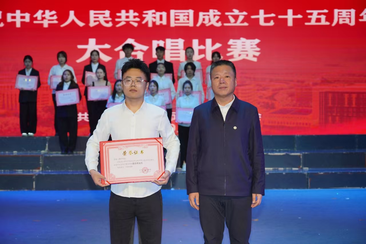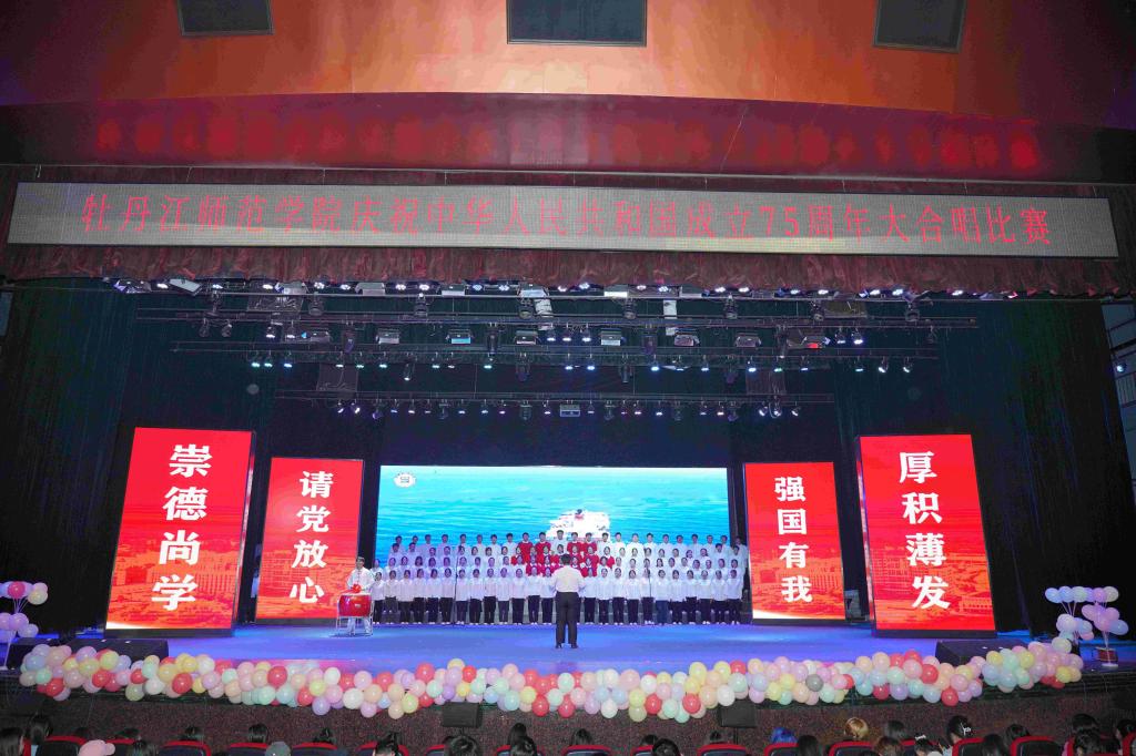 为热烈庆祝中华人民共和国成立75周年,热情讴歌75年来的光辉历程和伟大成就,切实增强师生员工的民族自豪感和历史使命感,进一步激发为实现中华民族伟大复兴而努力奋斗的坚定决心。9月25日下午,学校庆祝中华人民共和国成立75周年大合唱比赛在第一音乐厅举行,牡师青年用嘹亮的歌声向伟大的祖国生日献礼。学校领导王志浩、李春江、张燕梁、张艳霞、张晓祥、孙伯勇、刘恒文出席比赛,全校师生代表共计4000余人参加、观看比赛。