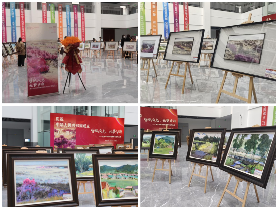 本次展览作品涵盖油画、水彩、国画等,均为教师以雪城风光为主题创作的佳作,展现了北国边城的绚丽画卷,表达了对祖国的热爱与祝福。现场气氛热烈,吸引众多师生和艺术爱好者参观,共同感受祖国的繁荣与美丽。