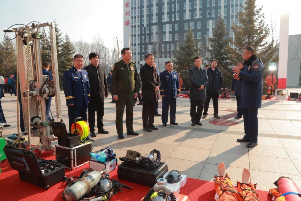 启动仪式结束后,与会领导现场观摩了支队在承担应对处置各类灾害事故中常用的高精尖装备和消防宣传科普展示区。我校200名师生代表参加了会议,并参观了消防宣传科普展示区。