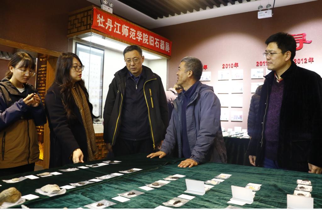 会前,与会专家、领导赴石人洞遗址现场进行实地考察。并在牡丹江师范学院观摩海林石人洞遗址考古发掘出土文物及牡丹江师范学院博物馆馆藏文物。