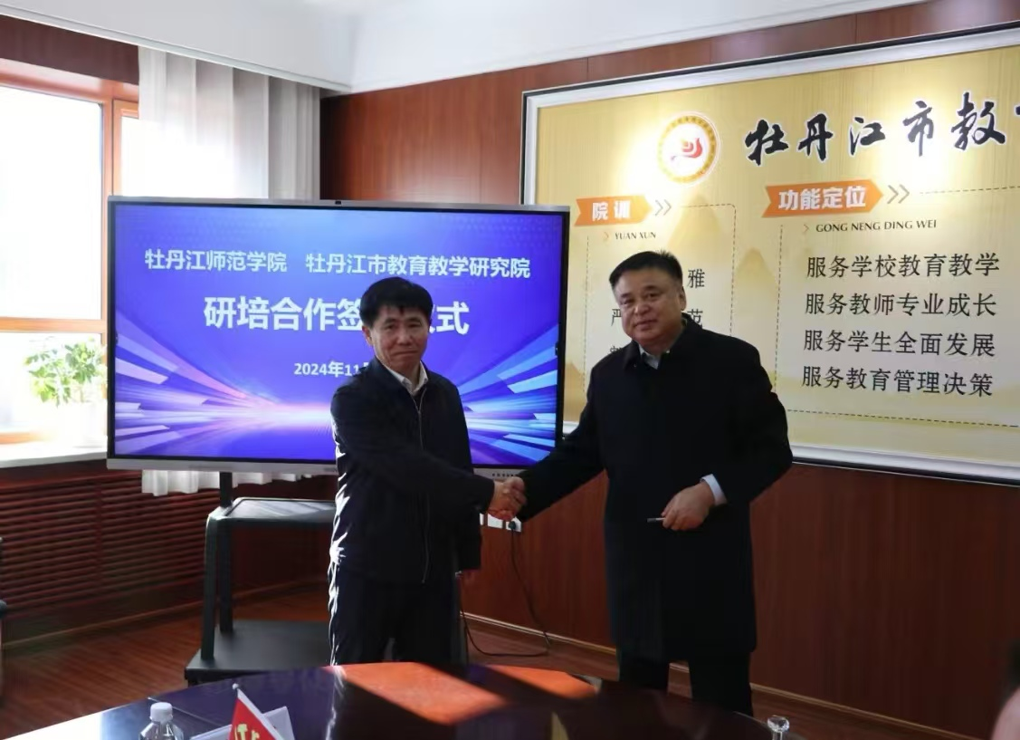 副院长左明辉和牡丹江市教研院万炳月院长代表双方签署了合作协议。双方基于共同的社会责任和工作使命,本着平等协商、资源共享、合作共赢、协同创新的原则,将在教育硕士人才培养、教师培训、高校与基础教育联合教研等方面全面加强战略合作。