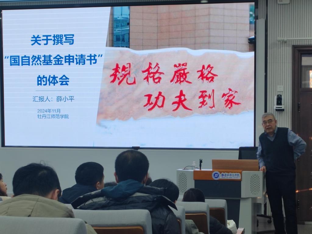 为切实谋划好2025年度国家自然科学基金项目申报工作,帮助我校教师准确掌握并及时全面了解国家自然科学基金的最新资助导向政策信息,掌握国家自然科学基金项目的申报技巧以及申请书的撰写要求和规范格式,提升项目申报能力与标书撰写质量和水平,提升项目申报成功率。11月20日下午,在综合楼201报告厅,科研处邀请了哈尔滨工业大学薛小平教授,作了题为《关于撰写“国自然申请书”的体会》的项目申报专题培训,副院长张冰、各理科学院主管科研工作副院长、科研骨干教师参加了培训,副院长张冰主持培训会。