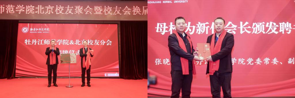 在校友们热烈的掌声中,牡丹江师范学院副院长、党委常委张晓祥为新任会长颁发了聘书。