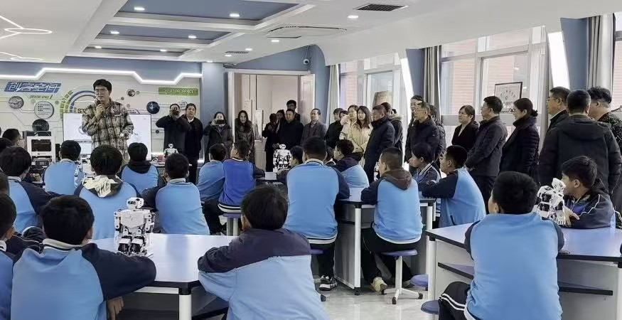 为进一步提升学院理工科专业内涵建设,夯实人才培养特色,深入推进“第二课堂”活动服务中小学,共建高校和地方基础教育发展共同体,实现教育资源共享,助力大学本硕生和中学生的科创人才培养。3月8日下午,物理与电子工程学院联合海林市第二中学开展“以科技星火燃创新未来”特色科创实践课堂活动。牡丹江师范学院副院长张冰,教育部师范教育协同提质计划东北师范大学组团莅临活动现场。海林市第二中学校长徐云龙和副校长相冬丽、牡丹江师范学院物理与电子工程学院教学副院长赵立萍、RTT联合实验室负责人刘陶唐、实验室成员参加了本次活动。本次课程由实验室代表陆熠晖主讲。