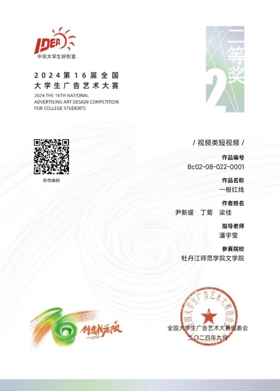 近日,第16届全国大学生广告艺术大赛评审工作圆满结束。经组委会评审,我校学生在全国总决赛中荣获国赛二等奖2项、三等奖1项、优秀奖7项,在黑龙江省赛中荣获一等奖2项、二等奖3项、三等奖1项、优秀奖35项。实现了该赛事在国赛获奖数量和名次上的双突破。
