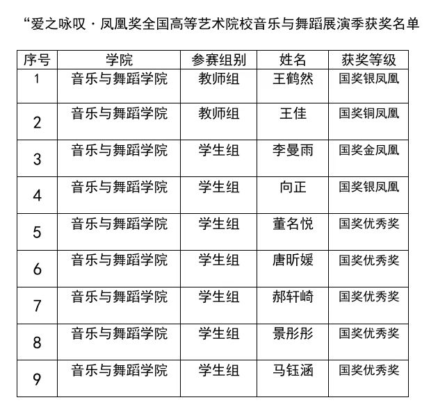 近日,“爱之咏叹・凤凰奖全国高等艺术院校音乐与舞蹈展演季”在沈阳圆满落幕。音乐与舞蹈学院院长尹茂源、副院长田野、声乐系主任潘栗、青年教师李心竹受邀担任评委。我校多名师生入选总展演,共斩获金凤凰奖1项、银凤凰奖2项、铜凤凰奖1项、优秀展演奖5项,音乐与舞蹈学院荣获“优秀组织奖”。声乐系主任潘栗、青年教师李心竹,代表牡丹江师范学院参演了教师评委音乐会。