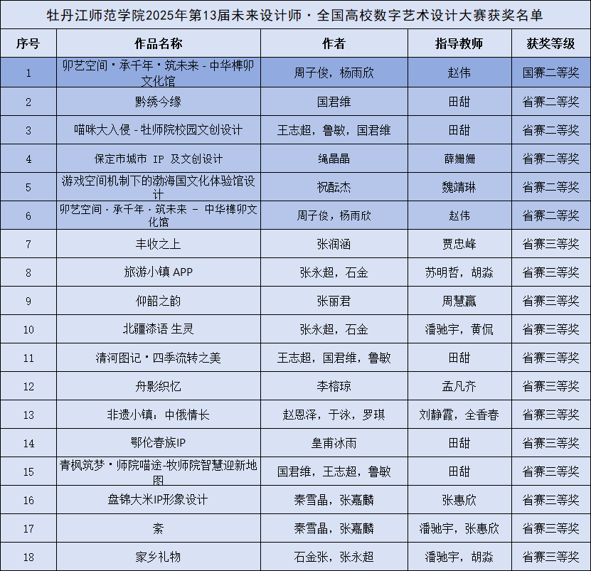 近日,第13届未来设计师·全国高校数字艺术设计大赛全国总决赛圆满落下帷幕。经过多轮角逐,最终我校荣获国赛二等奖1项,省赛二等奖5项、三等奖12项,获奖数量再获突破。