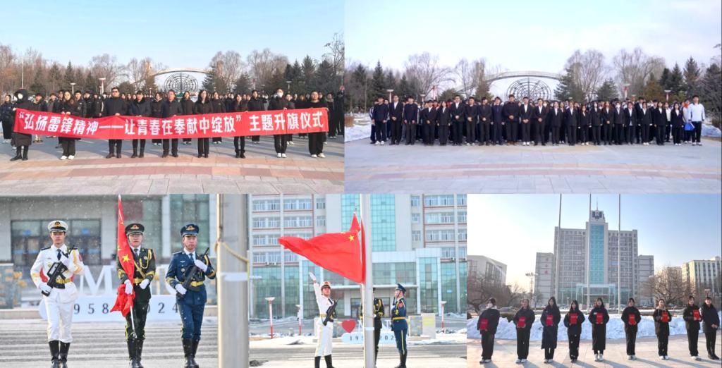 时光广场升旗帜,雷锋精神立我心。校团委、马克思主义学院团总支举行主题升旗仪式,发表“传承雷锋精神,奉献青春力量”主题演讲、朗诵《唱响新时代的“雷锋之歌”》,讲述雷锋故事,体悟精神内涵,表彰寒假志愿服务“优秀志愿者”,弘扬志愿者精神。美术与设计学院团总支举行升旗仪式,进行国旗下发言,朗诵《传承的雷锋精神》,发扬务实奉献的精神,点亮踔厉奋发的青春。