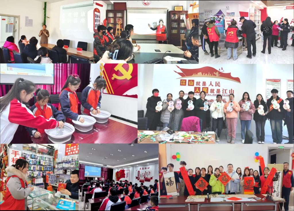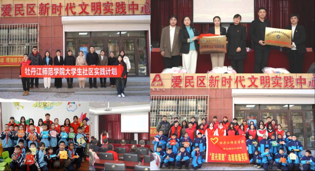 社区街道送温暖,雷锋精神映我心——文化进社区。教育科学学院团总支组织师生志愿者服务团队走进牡丹江市爱民区文化社区,由学院教授为社区居民开展心理健康知识讲座,志愿者开展手工DIY活动,增强奉献社会、锻炼自我的服务意识。马克思主义学院团总支组织“雪域先声”东北抗联精神宣讲团走进牡丹江市祥伦社区,宣讲东北抗联的艰苦卓绝历史及东北抗联精神的深刻内涵;组织青马先锋志愿服务队员开展社区清扫整理、防诈骗知识普及宣传,美化社区环境,增强防范意识,促进院社融合。物理与电子工程学院团总支走进爱民区新时代文明实践中心,发挥专业特长为紫光学校的小学生演示趣味物理实验,讲解原理知识,激发小学生的物理探究热情,提升志愿者专业素养。西方语言学院团总支走进庆旺社区开展垃圾分类、小广告清除、自行车摆放志愿服务,协助维持义诊体检秩序,讲解卫生保健知识,提供情绪疏导,开展毛笔字交流活动,展现中华文化之美。