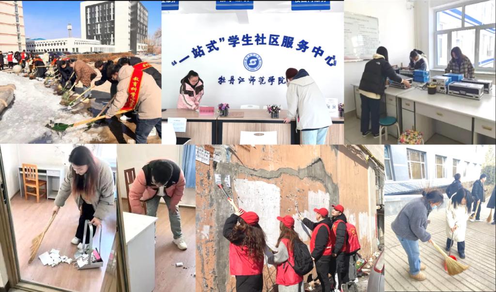 美丽乡村展画卷,雷锋精神靓我心。各团总支组织青年志愿者走上街头,清洗公交站牌、隔离带、路灯杆等设施;组织围绕文明健康理念普及,进入公园,清洁座椅、健身器材等公共设施,清洁校园公共区域,清理宣传栏广告,清理分担区内积雪等,建设文明城市,助力乡村振兴。马克思主义学院团总支组织研究生开展“校园卫生大扫除”活动,对文科楼前后区域开展细致的打扫清理,用实际行动引领广大同学积极参与到校园卫生清扫的活动中。化学化工学院、计算机与信息技术学院、教育科学学院、经济与管理学院、历史与文化学院、美术与设计学院、体育与健康科学学院、文学院、物理与电子工程学院、西方语言学院、音乐与舞蹈学院团总支组织志愿者扫雪暖寒冬、除冰护出行,对校园操场积雪进行义务清扫,保障出行安全,消除安全隐患,为广大师生营造了干净整洁的校园环境。法学院、美术与设计学院团总支走进牡丹江市爱民区向阳街道林卫社区,清扫街道和平台的垃圾,清理墙面和宣传栏的小广告,改善社区人居环境。历史与文化学院团总支组织青衫志愿服务队协助西长安社区居委会对社区公共区域进行环境治理,铲除小广告,清理宠物粪便,为小区居民们创造了更加整洁的环境。马克思主义学院团总支组织开展外语楼志愿清扫活动,以雷锋精神教育、激励和引领大学生树立担当民族复兴重任的远大理想,做新时代雷锋传人。体育与健康科学学院团总支组织开展以“劳动淬炼成长 实践创造幸福”为主题的“五个一”劳动教育周实践活动,即清洗一次衣物、整理一次寝室内务、维护一次校园环境、发出一份“劳动光荣”倡议书、举办一次“我爱劳动”主题征文比赛,组织开展宿舍劳动大扫除活动,践行劳动实践,弘扬雷锋精神。物理与电子工程学院团总支组织开展理工楼实验室清扫活动,仔细擦拭实验器材,使实验室环境焕然一新;组织学生志愿者于校外开展清除小广告志愿活动,用实际行动为学校增添靓丽风景。西方语言学院团总支组织开展16号公寓一站式学生社区服务中心劳动教育周清扫活动,维护校园环境,展现青春热情。音乐与舞蹈学院团总支组织志愿者在钟楼和艺体楼组织开展卫生清扫活动,保持学习环境的卫生,营造“人人像雷锋,天天学雷锋,时时有雷锋”的浓厚氛围。应用英语学院组织党员代表在宁安市马骏纪念馆周边开展垃圾捡拾活动,以实际行动表达出对革命先烈的崇敬,展现了向雷锋同志学习并不断发扬雷锋精神的坚定决心。