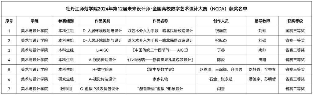 近日,第十二届未来设计师·全国高校数字艺术设计大赛全国总决赛圆满落下帷幕,我校荣获国赛三等奖1项,省赛一等奖1项、二等奖2项、三等奖3项,美术与设计学院教师刘硕荣获全国赛优秀指导教师奖。