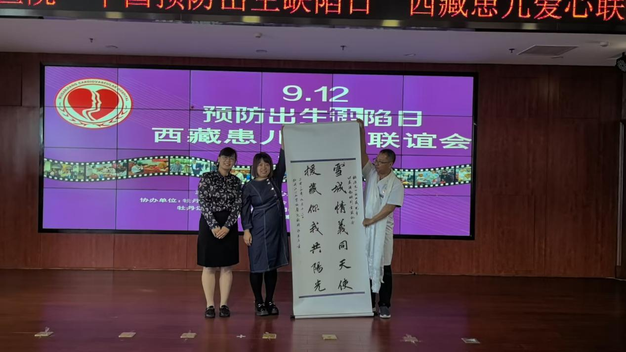 活动现场,牡丹江师范学院学生旦增尼玛和杨心同用汉藏双语主持了整场联谊会。志愿者们为孩子们表演了精心准备的节目,5名藏族学生志愿者与患病儿童一同合唱了藏语歌曲《1376心想事成》,他们用动听的歌声传递着关爱与希望,为西藏患儿们带去了欢乐和温暖,让藏区先心病儿童度过了难忘的一天。牡丹江市心血管病医院院长刘凯代表医院为学校赠送书有“雪城情谊同天使,援藏你我共阳光”的书法作品。