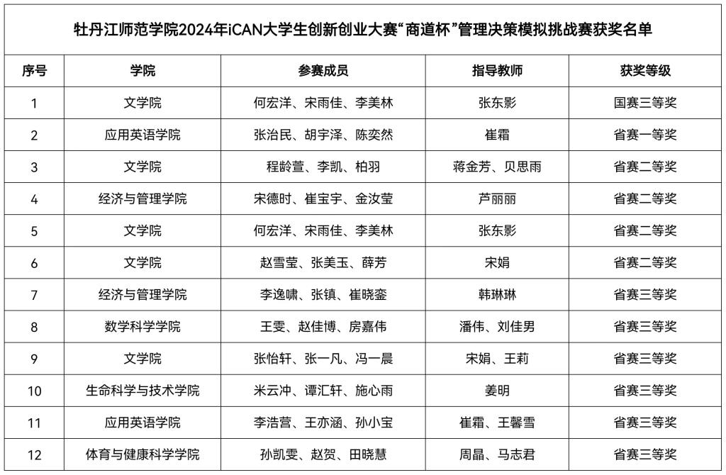 近日,2024年iCAN大学生创新创业大赛“商道杯”管理决策模拟挑战赛全国总决赛在合肥经济学院圆满落下帷幕。经过激烈的软件运营赛和总决赛答辩,最终我校荣获全国总决赛三等奖1项,省赛一等奖1项、二等奖4项、三等奖6项,应用英语学院教师崔霜荣获“优秀指导教师奖”。