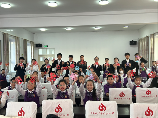 活动第一项,火炬小学的同学们带来了舞蹈《美丽中国走起来》,活力四溢的舞蹈跳出了对祖国山河的热爱与赞美。活动第二项,青衫志愿者党支部党员韩昊延为大家讲授了以《抗日英雄吉鸿昌》为题的党课,他详细讲解了吉鸿昌在抗日战争里的卓越贡献,对其英勇无畏、血战到底的英雄气魄,以及舍生忘死、救国救民的伟大献身精神予以高度颂扬。吉鸿昌的事迹动人心弦,其形象鲜活立体,令在场师生皆为之动容,深受激励与鼓舞。活动第三项,火炬小学三年四班杨铠睿同学带来演讲《立少年志、扬中华魂》,杨铠睿同学以生动的语言、真挚的情感,深刻阐述了毛泽东同志的崇高精神风范,激情澎湃的演讲诉说着少年心中宏伟的志向与民族精神的传承。活动第四项,历史与文化学院研究生乔治演唱歌曲《志愿军战歌》,歌声如冲锋的号角,将人们的思绪拉回到那段硝烟弥漫、热血激昂的抗美援朝岁月。活动第五项,火炬小学的同学们表演歌曲《中国》,他们用清脆的童声传递着炽热的爱国情怀,唱出了对祖国深深的眷恋与敬意。活动第六项,青衫志愿者党支部党员张居祺带来了互动课程《“纸”尖上的非遗文化》,他以非物质文化遗产的内涵为切入点,详细地讲述了剪纸艺术的起源与发展脉络,从古老的民俗传统到现代的创新演变一一娓娓道来,在互动环节,在历史与文化学院师生的耐心指导下,火炬小学的同学们亲自动手,体验剪纸的奇妙乐趣,感受我国非物质文化遗产中蕴含的无穷智慧与匠心,使古老的非遗文化在欢声笑语中得以传承与延续。活动最后,全体党员面向党旗庄严宣誓,重温入党誓词,追忆入党初衷,牢记党员宗旨,不忘党员本色,表达忠于党、守初心、担使命的决心。
