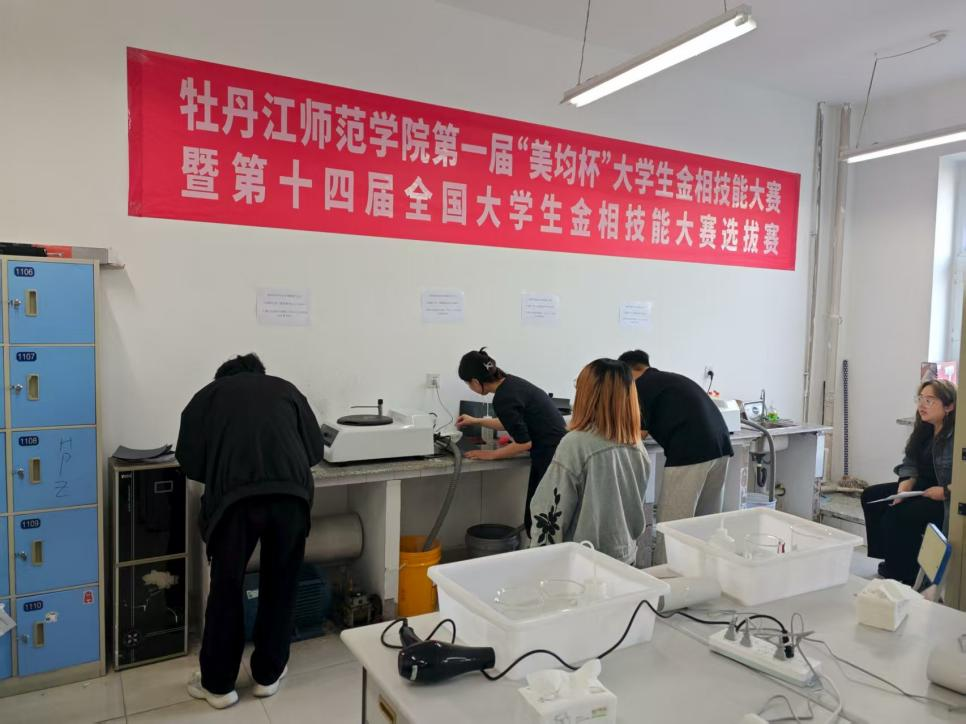 为备战第十四届全国大学生金相技能大赛全国总决赛,物理与电子工程学院院长张蕾高度重视,亲自统筹协调场地、设备与耗材等资源,多次深入训练一线慰问师生,以“追求卓越、精益求精”的工匠精神激励团队。学校金相实训中心配有金相显微镜、全自动抛光机等高端设备,为学生参赛提供设备保障。参赛学生孙碧莹、杨丹妮、董雪在指导教师黄海亮、王丹的带领下,开展高强度分阶段训练。从粗磨到精抛,严格把控砂纸目数升级与单向研磨技巧;针对不同材料特性,精准控制硝酸酒精腐蚀时间,反复调试显微镜参数以捕捉清晰组织图像。最终,参赛师生凭借这份执着与严谨,获得国赛一等奖1项、二等奖1项、三等奖2项的优异成绩。