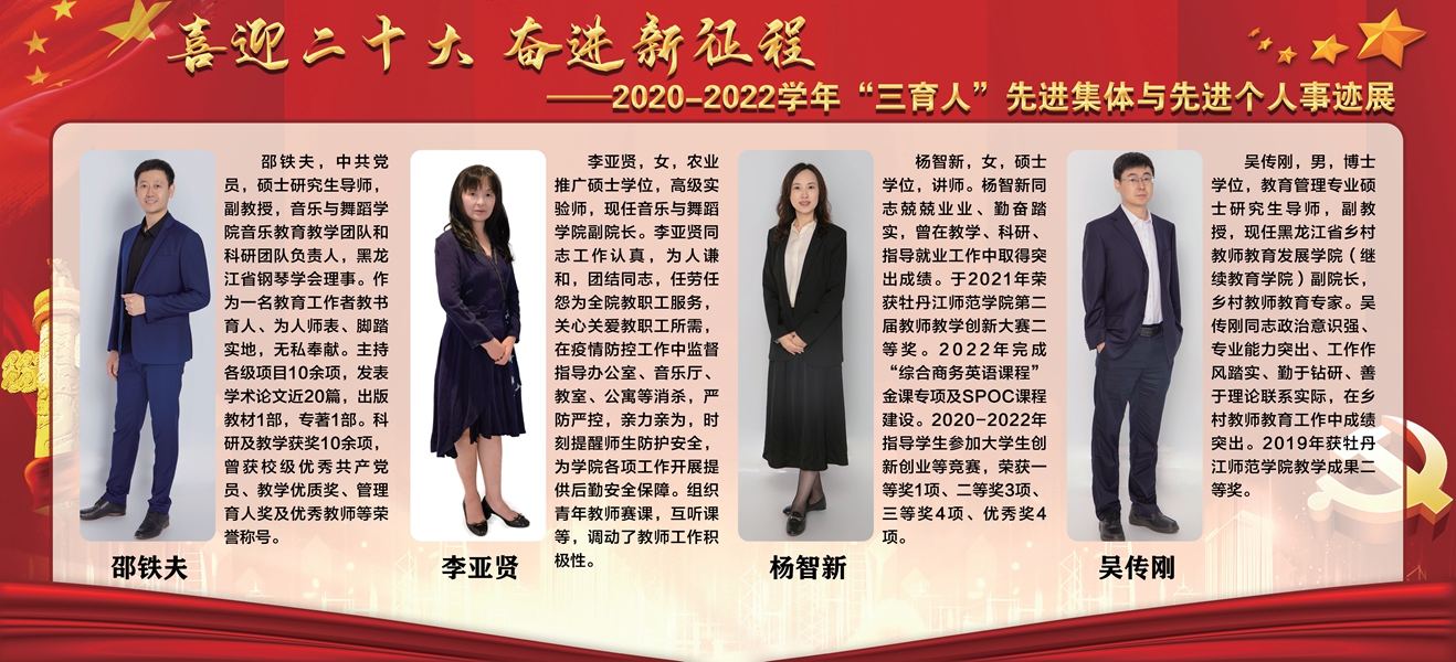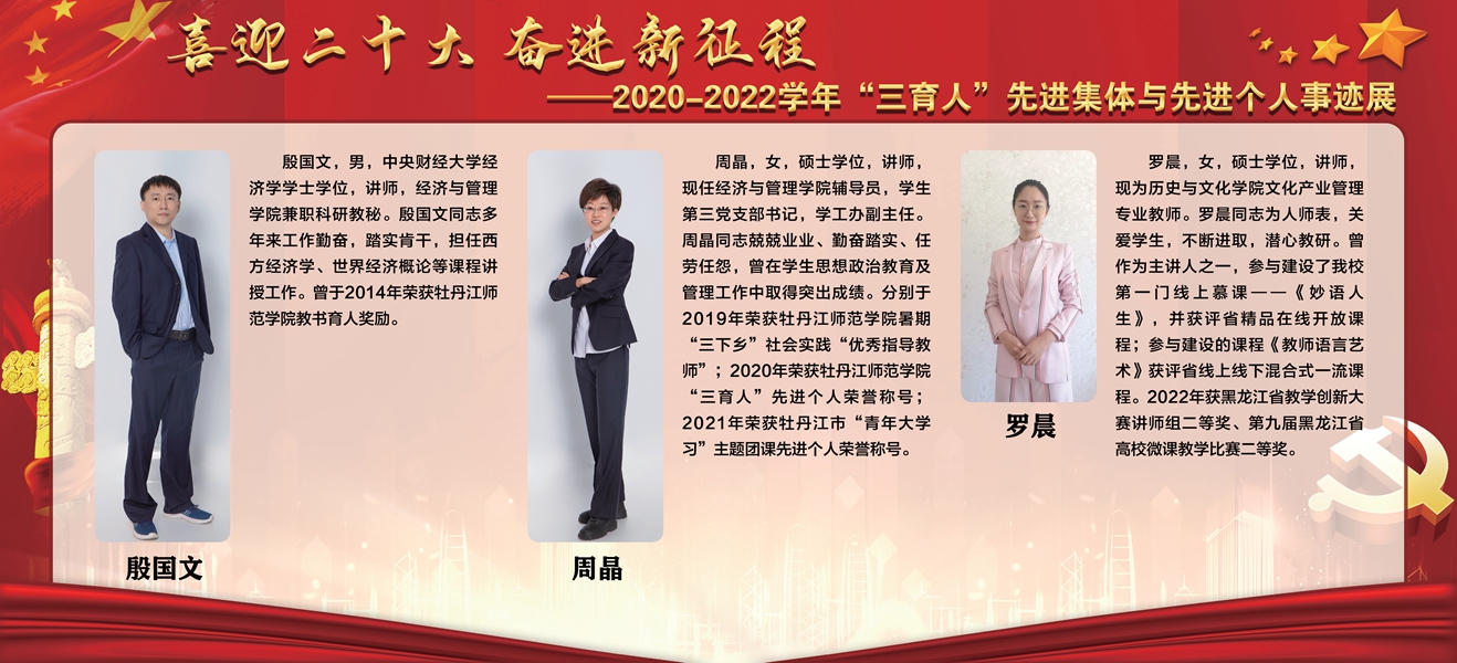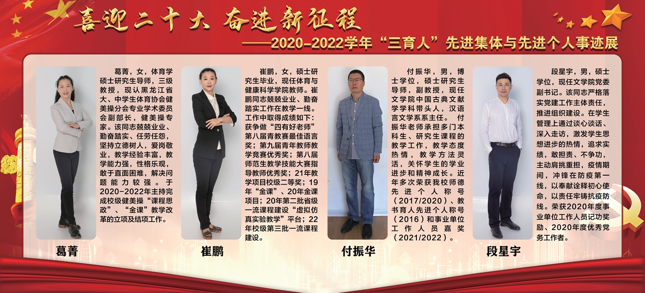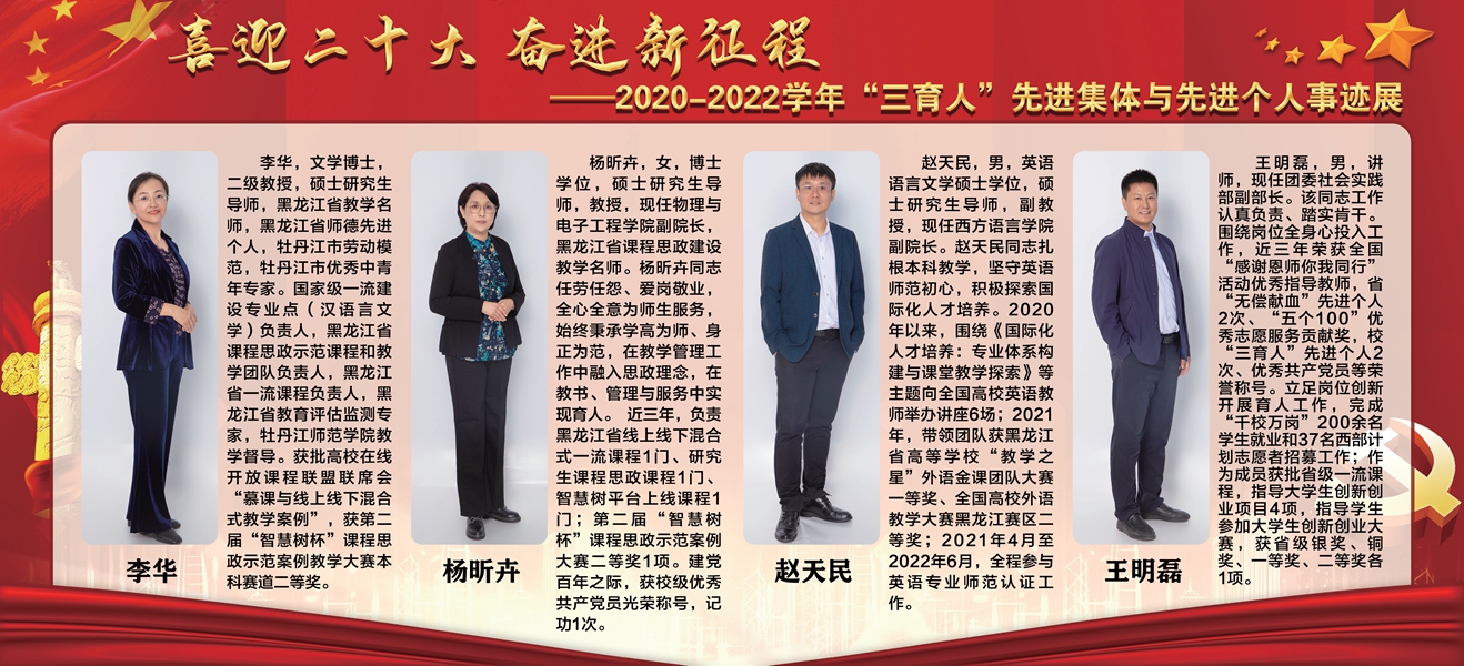 上一条:【喜迎党的二十大 培根铸魂育新人】牡丹江师范学院第三届“三育人”标兵——东方语言学院副教授郭娉婷
