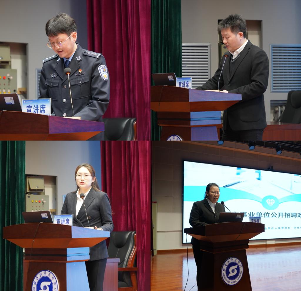 牡丹江市人社局、教育局、公安局、穆棱团市委、牡丹江市社会工作部有关同志、牡丹江友博药业有限责任公司的企业代表、学校招生就业处全体干部以及学校400余名意向留省、留牡的学生主动参加宣讲活动。活动现场,牡丹江市政府相关职能部门同志及企业代表围绕着国家基层项目(三支一扶、特岗教师、西部计划)、事业单位公开招聘政策指南、社区工作者、公安辅警考录政策、劳动关系政策及高新技术企业用人需求等方面进行详细解读,为学生们提供了全面、准确的就业政策信息和就业权益保障指导服务。