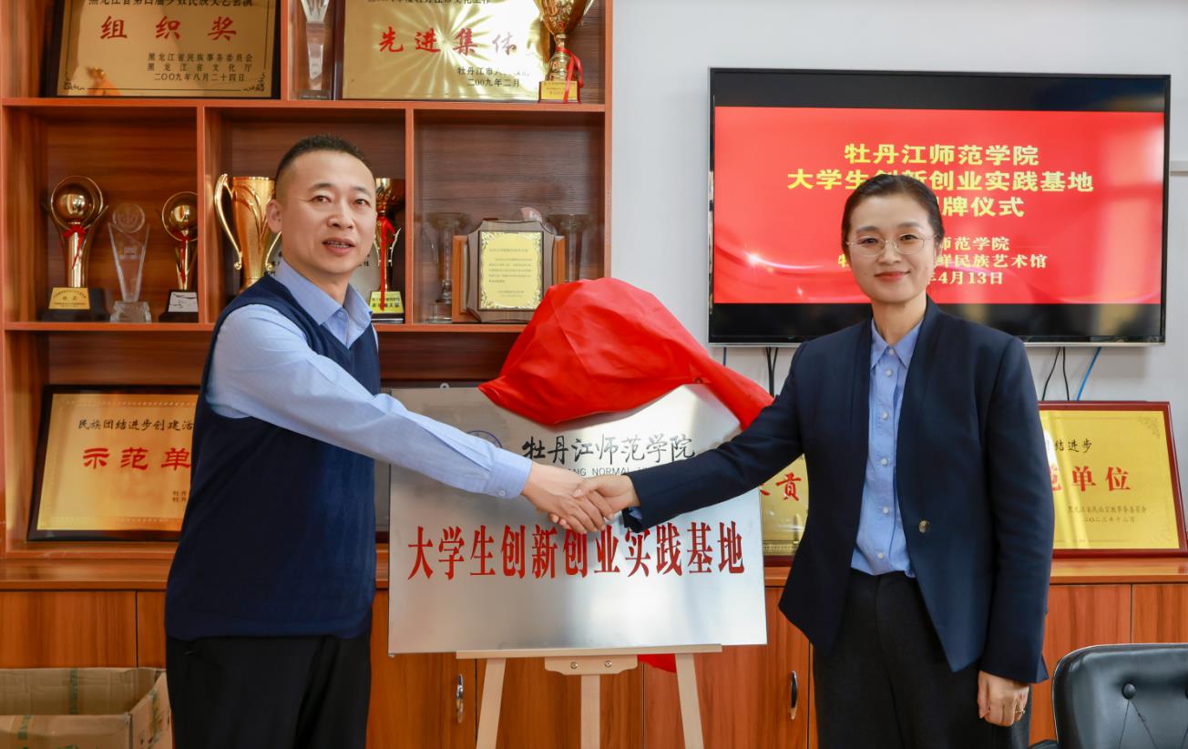 4月13日下午,我校与牡丹江市朝鲜民族艺术馆共建“大学生创新创业实践基地”签约揭牌仪式在牡丹江市朝鲜民族艺术馆举行。副院长张冰,牡丹江市文体广电和旅游局副局长王威,牡丹江市朝鲜民族艺术馆馆长白莹出席活动。