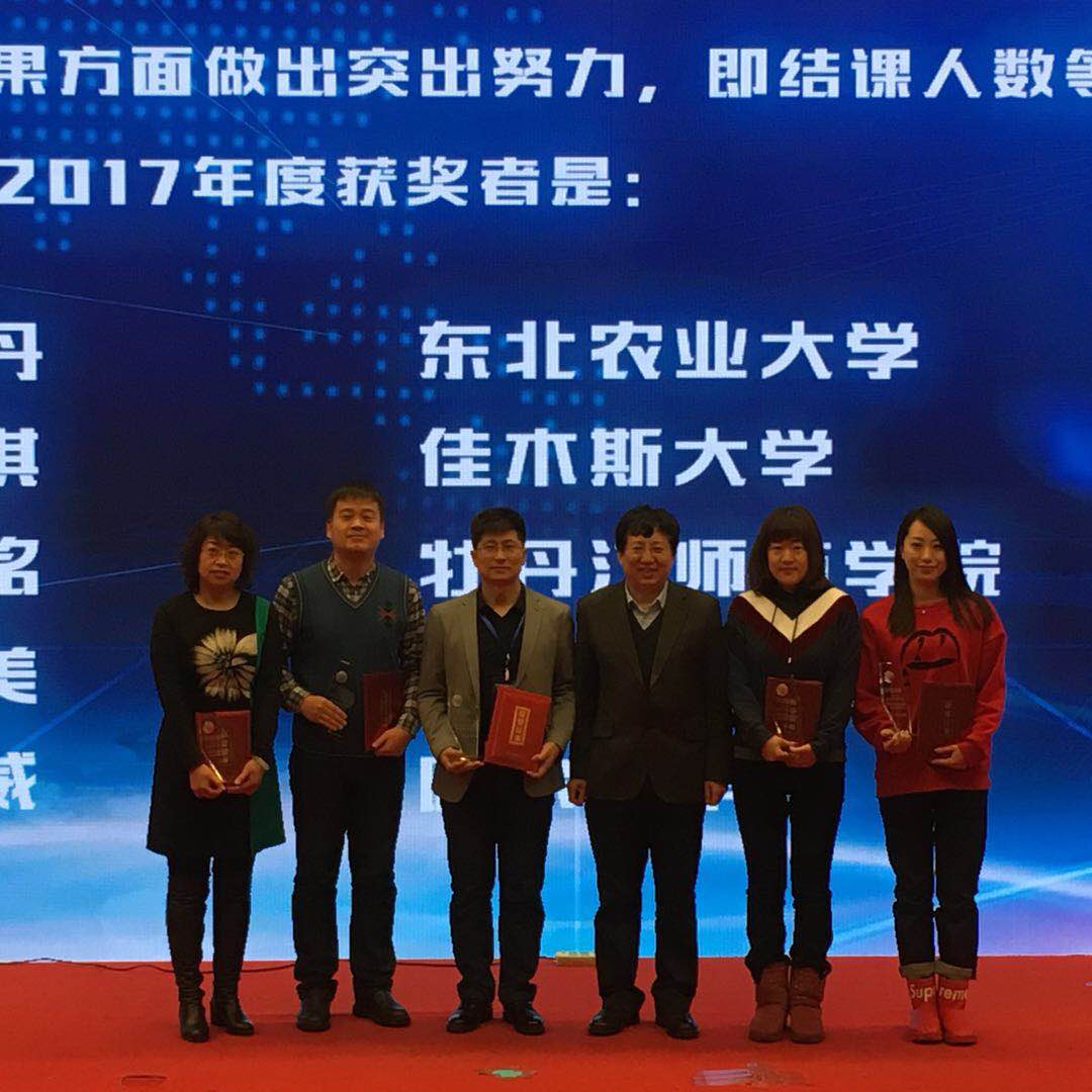 1月18日,黑龙江省高校在线开放课程建设与应用经验交流会暨黑龙江省高校优质课程联盟2017年年会在哈尔滨师范大学科学会堂召开,省教育厅副厅长尹晓岚以及省内31所高校教务处处长、在线开放课程服务平台负责人、省精品在线开放课程负责人及优秀教师代表500余人参加会议。省教育厅高教处处长蒋鲲宣读了黑龙江省精品在线课程教师获奖名单,我校臧国铭、董慧、罗晨教师团队制作的《妙语人生》慕课荣获最佳果实奖。本次年会共评选出67门省级精品在线课程,30名在线开放课程负责人获优秀教师奖。