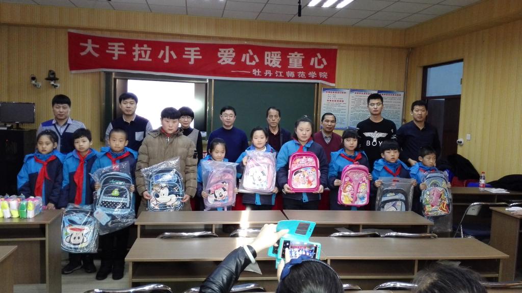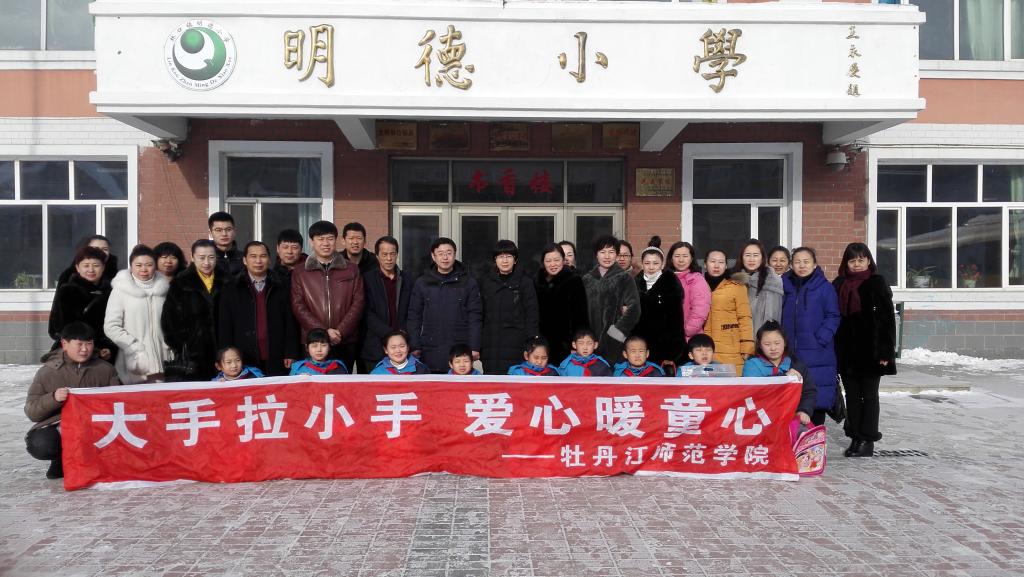 1月11日,我校与林口教体局“大手拉小手 爱心暖童心”对接仪式暨留守儿童捐赠仪式在林口明德小学举行。本次活动旨在深入贯彻落实省高校工委、省教育厅《关于开展高校大学生与农村留守儿童“大手拉小手”关爱行动实施方案》工作安排。林口县教育体育局局长于海平、副局长谢在清、业务科科长段亚东,我校团委书记郑维东、副书记陈晓东、经济与管理学院团总支书记孙成、团委社会实践部副部长王明磊以及我校志愿者和明德小学教师、留守儿童代表参加了本次活动。