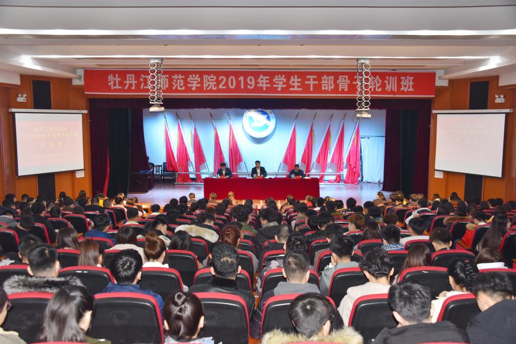 2月22日,2019年学生干部骨干轮训班开班式在春秋讲坛举行。共青团牡丹江市委员会书记程亮,我校党委常委、副校长张冬出席开班式。学校各二级学院学生会主席、团总支副书记、全校各班级班长、校学生会学生干部代表共计386人参加培训。学校各二级学院团总支书记应邀参加开班式。开班式由校团委副书记陈晓东主持。