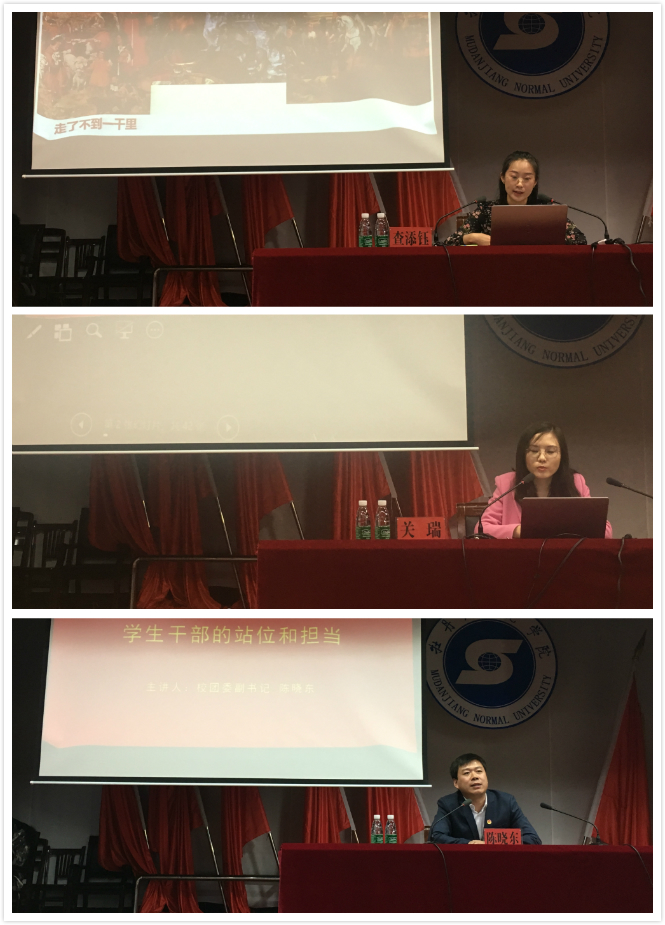 开班式结束后,分别开展了3场主题辅导、1场学员论坛、2次社会实践和1次经验交流。牡丹江市委党校查添钰老师、牡丹江团市委宣传部关瑞、我校团委副书记陈晓东分别以《弘扬伟大长征精神争做合格团学干部》《新时代党和国家对青年人的新要求和新期待》《大思政格局下学生干部的站位与担当》为题,对学生干部提出了具体的期望和要求。