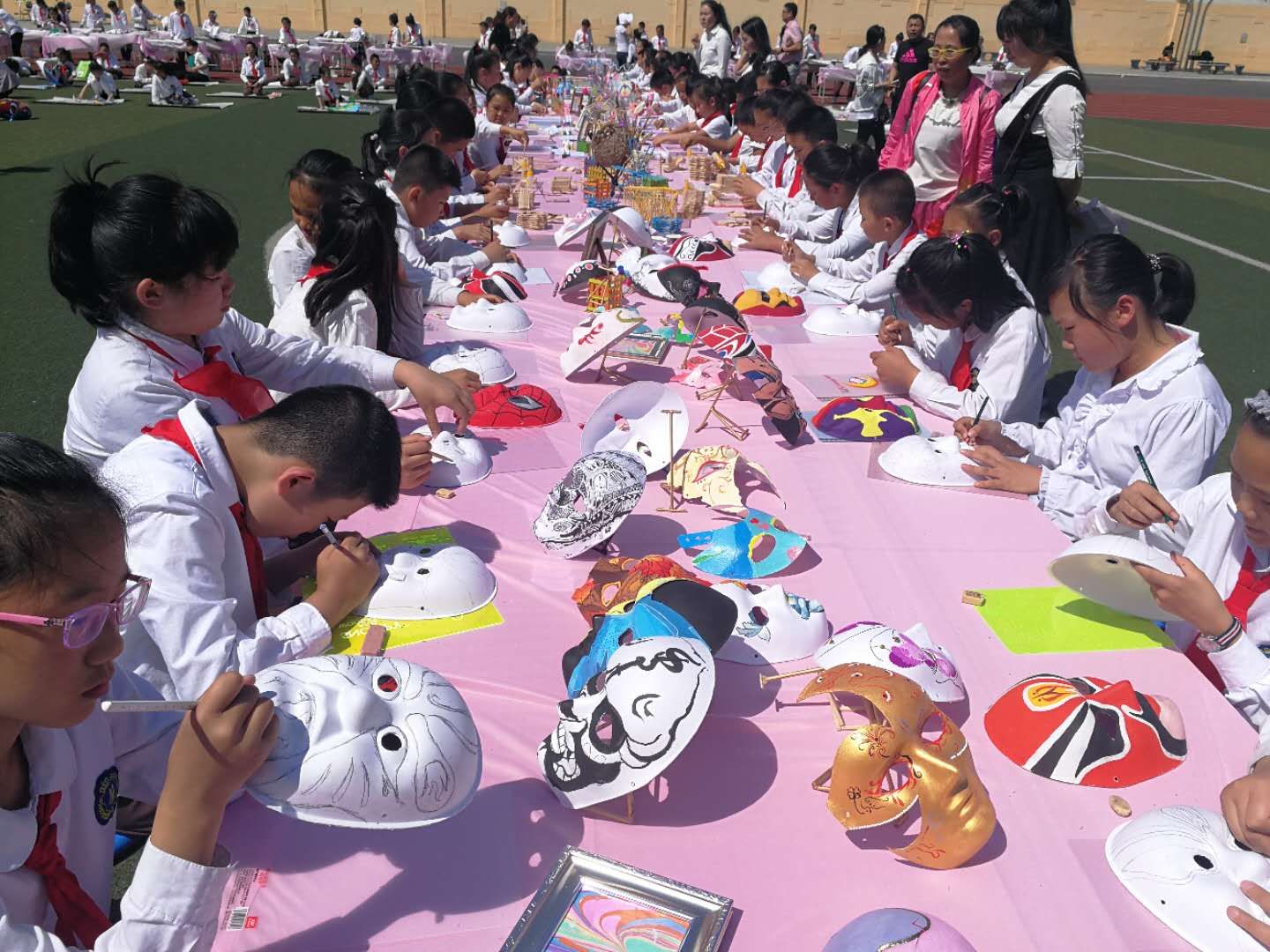 活动中,牡丹江市各小学校长和家长参加观摩,长安小学300余名学生现场制作和展示扎染、脸谱、水拓画、皮影、纸浮雕、绘画等传统文化艺术作品,活动得到了各界人士的好评。